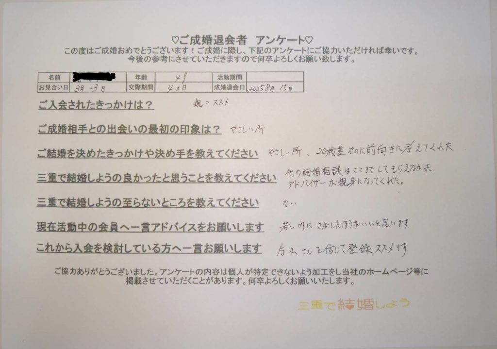 「三重で結婚しよう」では、成婚退会された会員さんよりアンケートを頂いています📝